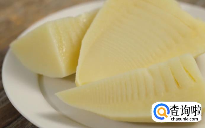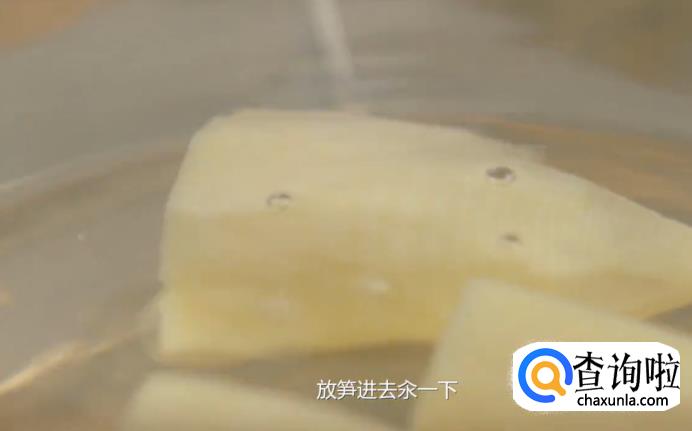 接着,另外起一口锅,将笋放进去汆一下,清水烧开,然后将笋捞出,放在盘中备用。