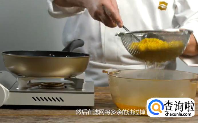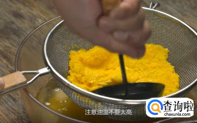 然后,在滤网中将多余的油过掉,滑蛋丝多放一点油都可以,但是需要注意油温不要太高。