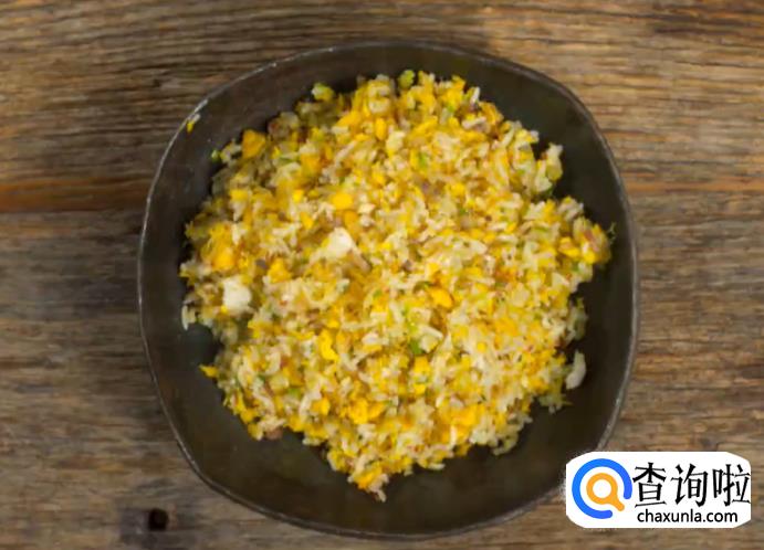 最后撒上鸡粉,再翻炒一会儿,撒上葱花炒匀,一道香喷喷的扬州炒饭就完成了。