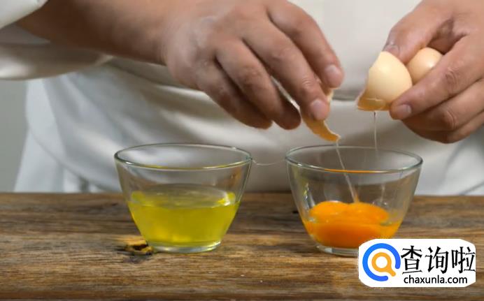 取6个蛋黄和2个蛋清,分开装在碗里,再搅拌均匀。