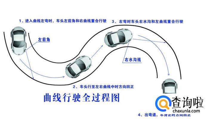 1、车进入曲线行驶时,尽量靠近右侧边线,第一个弯道是向左转。