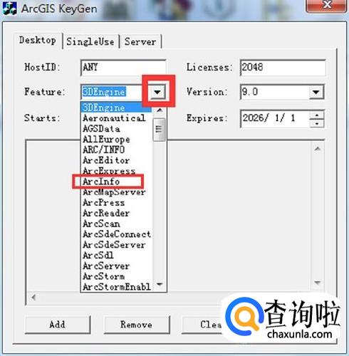 找到Ferture后面的选项符号,点击进入到功能的分类中,一般安装都会选择ArcInfo这个功能,点击选中即可。