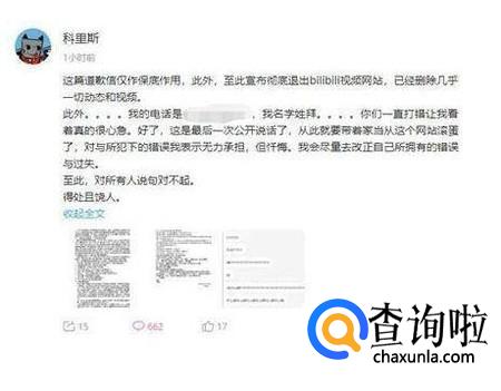最后在网友的大力支持下,b站发布了道歉声明,并对相关信息进行删除,这一整个事件就称为b站克里斯事件。