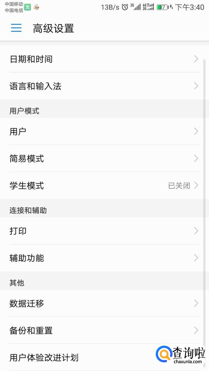 打开高级设置后,往下拉,会出现备份和重置,点击它
