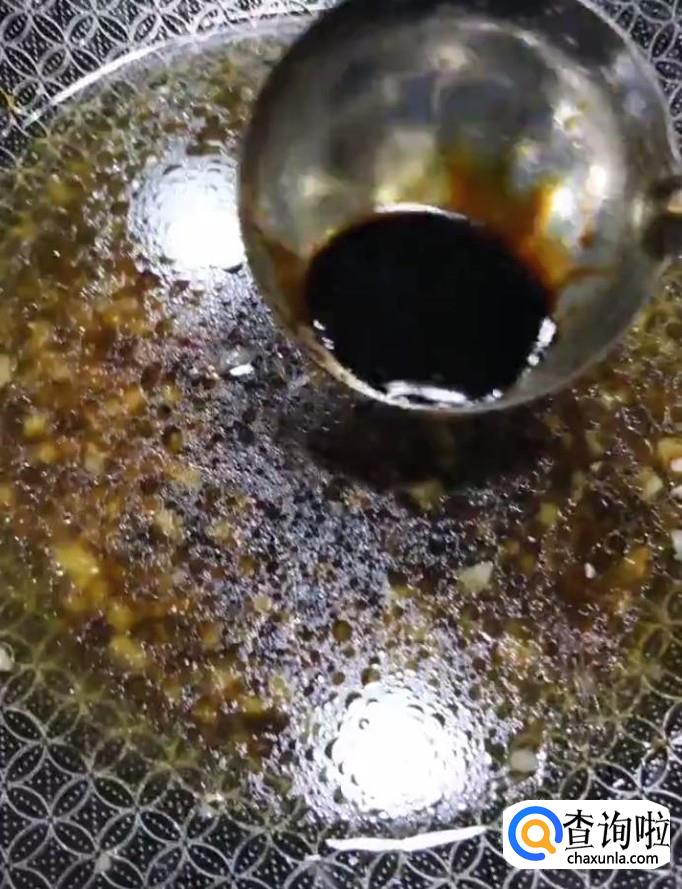 然后我们把锅清洗干净,放入少许油,油热放入葱蒜末,加入适量的生抽,老抽,加适量的水