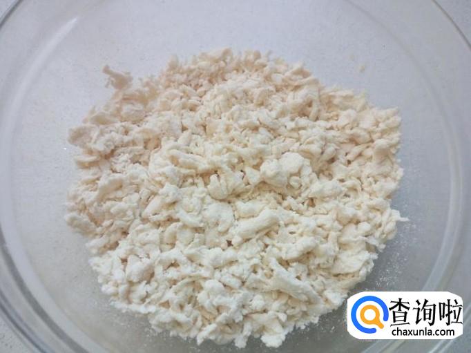 准备一个碗,碗里放入面粉,把自来水开到最小滴的水,然后让水滴在面上,每滴些水,用筷子搅拌一下,使面粉成为小面疙瘩,重复滴水搅拌至面粉全部成为小面疙瘩即可,备用。(不要把面粉放在自来水下面,一直滴水,这样会造成水过多,使面粉粘结在一起,形成面团,搅拌的时候,让面粉离开水,搅拌后,再滴水,反复操作)。