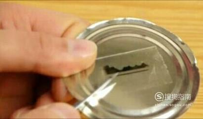 然后,将透明胶带贴于烤黑的钥匙之上,再将胶带贴于铁皮之上。