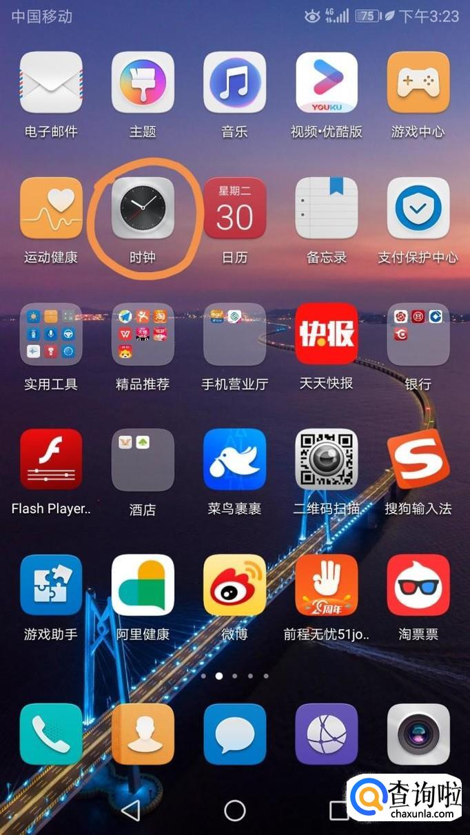首先,我们打开我们的手机,然后我们点击手机桌面上的时钟;