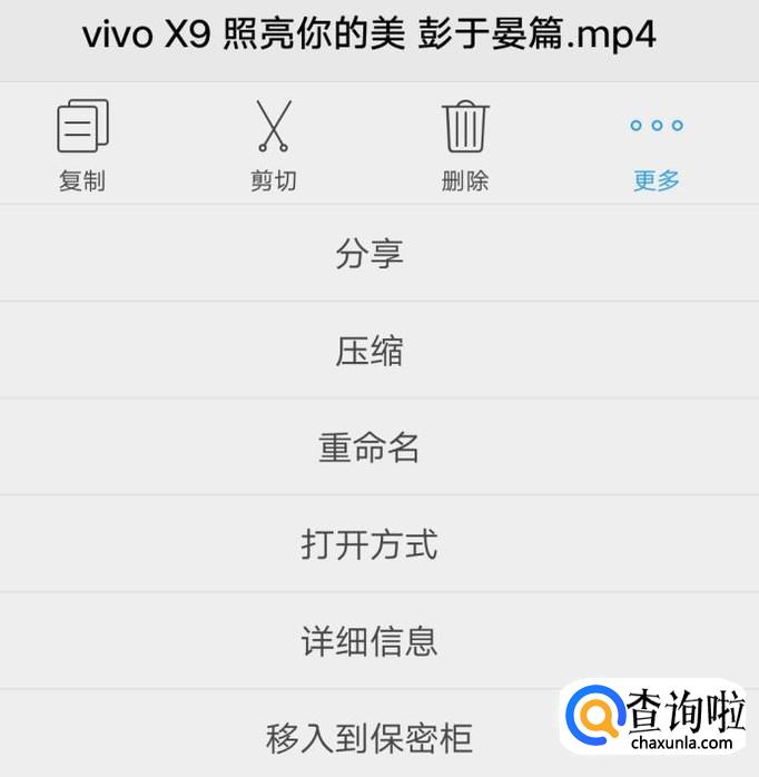 我们选择要进行加密处理的视频,长按该视频,选择“更多”,点击“移入到保密柜”。