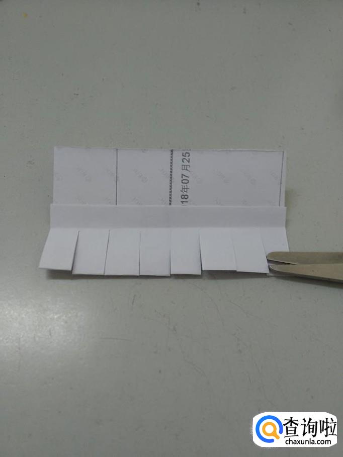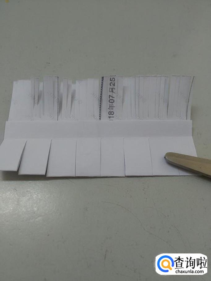 把长条的下面用剪刀全部剪成宽宽的条。
