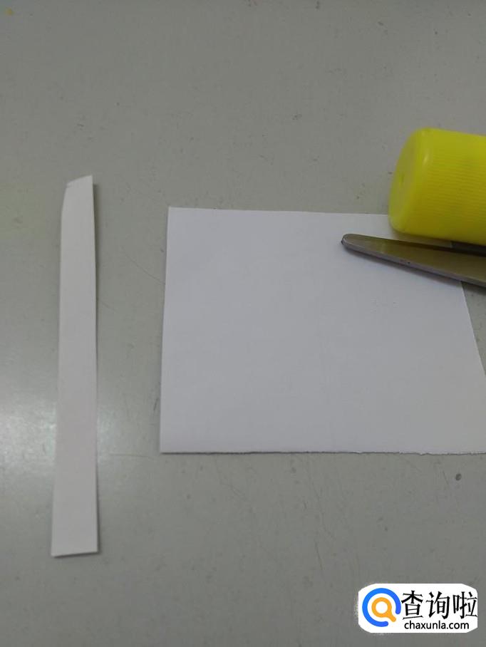 准备一个小纸条,一个长方形纸、一把剪刀、一个胶棒。