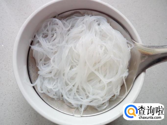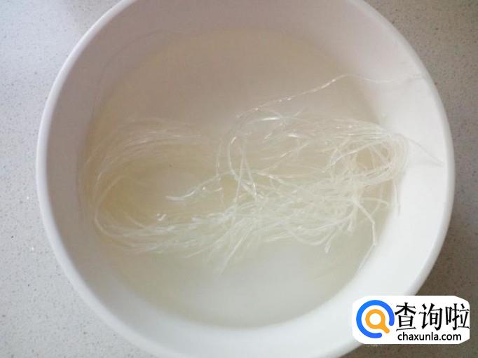 先用温水把粉丝泡软,然后用水投一下,控干水分。