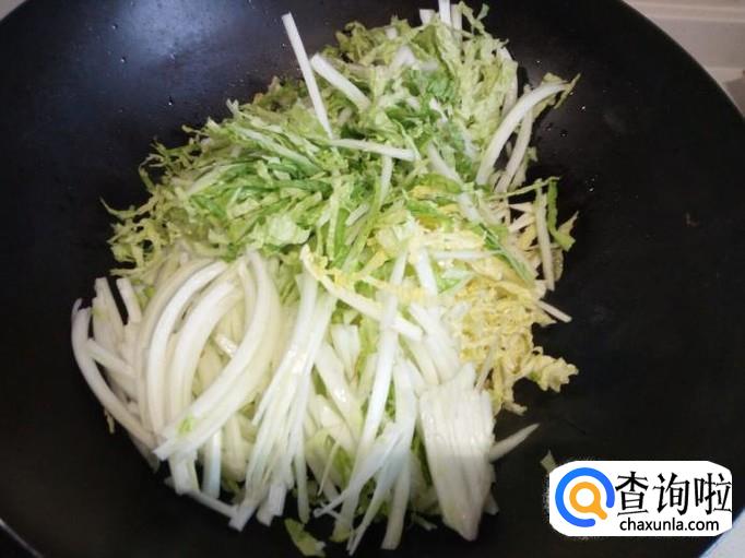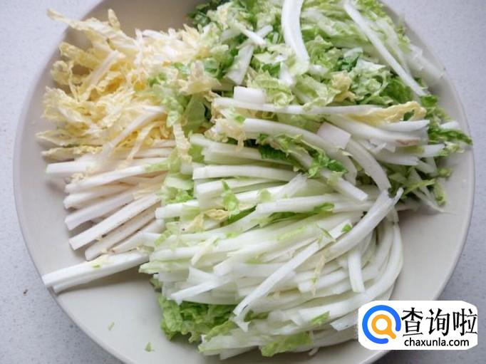 大白菜用水清洗干净,控干水分,切成丝。
