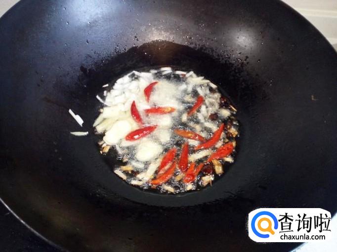 锅内放入油加热,油要稍多一些,炒大白菜放油少了不好吃。油热后放入八角,花椒爆锅,放入葱,姜,蒜,红干椒炒香。