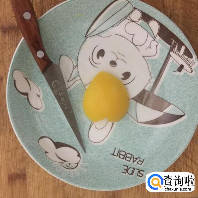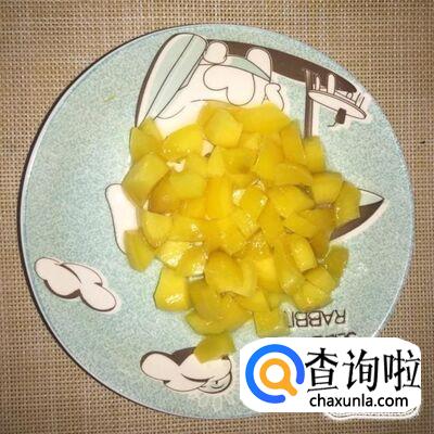 首先将黄桃去皮,放到白开水中浸泡半个小时。