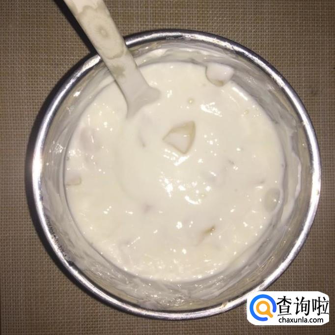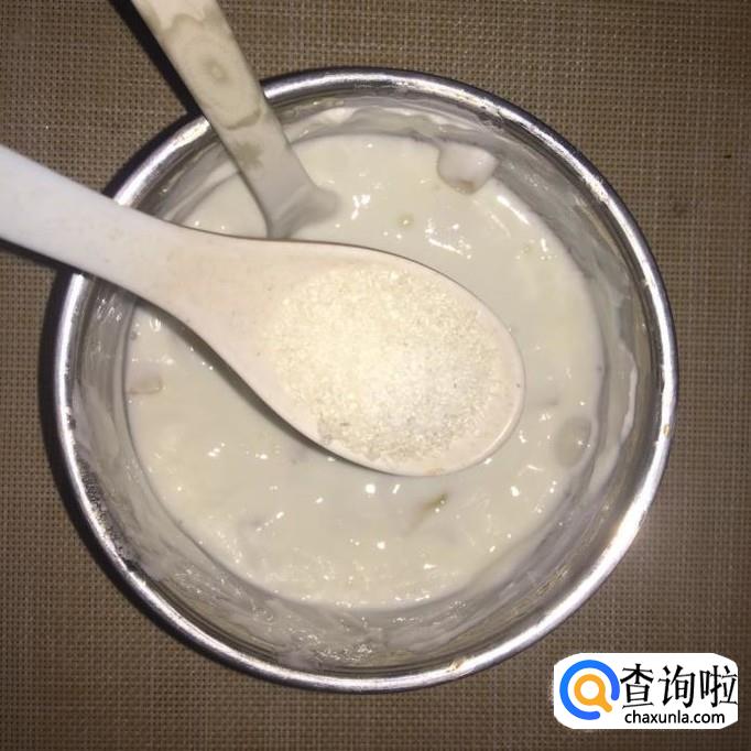接着往酸奶中加入适量的白砂糖搅拌均匀,如下图所示。