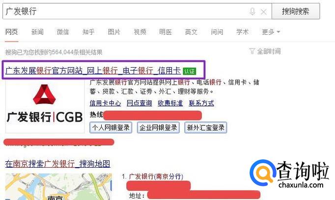 之后我们在搜索引擎中输入广发银行,然后按回车键;