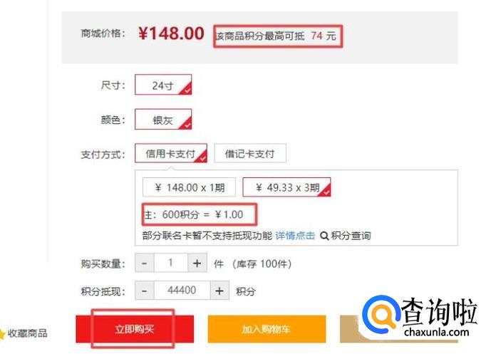 弹出的界面,我们可以看到积分可以进行抵扣,我们点击立即购买,然后相应的用我们的积分进行抵扣就可以了。目前广发银行的信用卡积分也只能这么使用了。