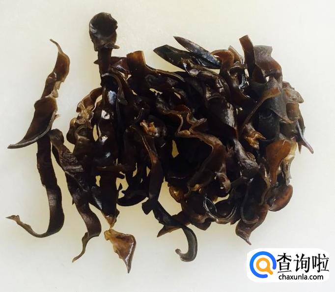 木耳泡发4个小时左右择洗干净根部的杂质,控干水分切成木耳丝