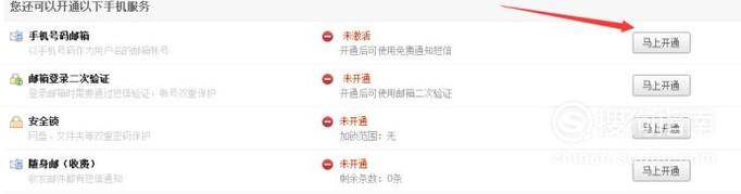在手机服务页面中找到“手机号码邮箱”点击马上开通。
