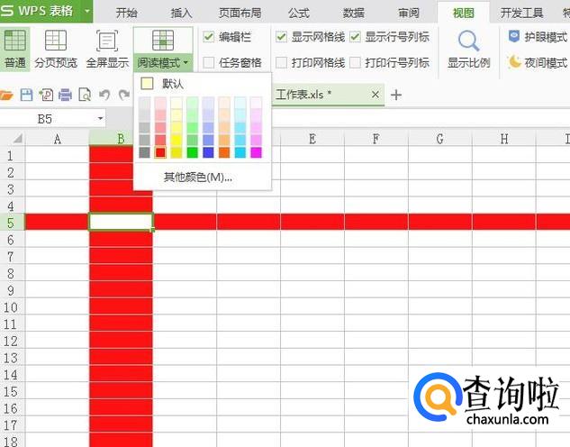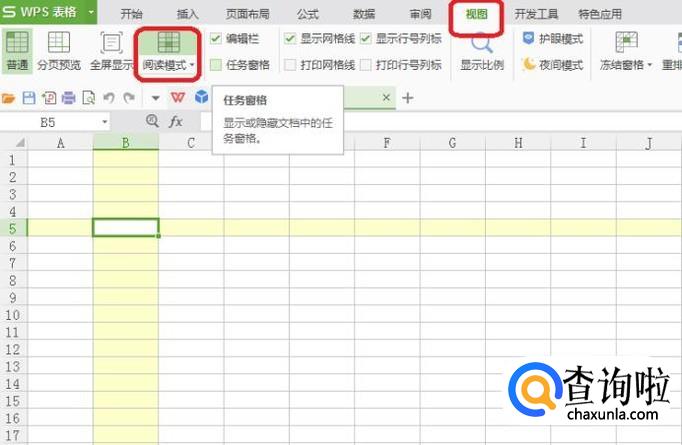 然后,我们点击菜单栏“视图”,然后点击功能区的“阅读模式”,就看到光标变成了十字光标的样式,如图所示。