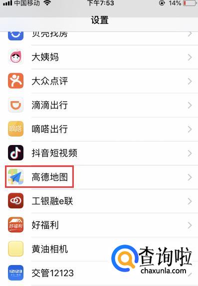 如果是苹果手机,则需打开手机的【设置】界面,找到【高德地图】点击进入。