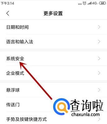如果是安卓手机,则需打开手机的【设置】界面,找到【更多设置】中的【系统安全】。