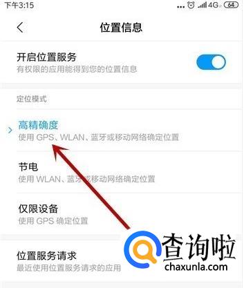 开启位置服务,并在定位模式中选择【高精确度】即可。