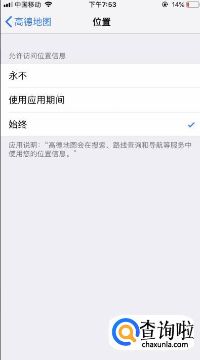 在【选择允许访问位置信息】里选择【始终】允许即可。