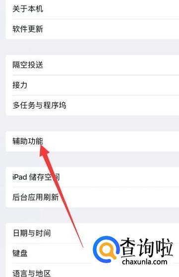 进入之后,点击“辅助功能”,进入下一页面,如图所示。