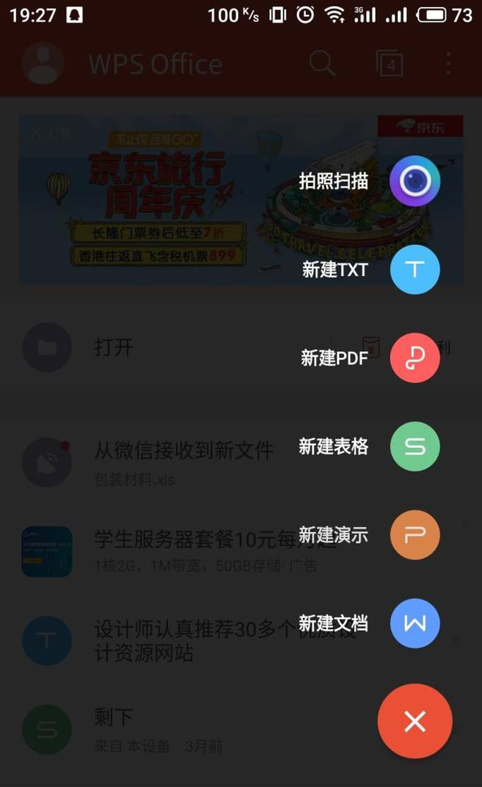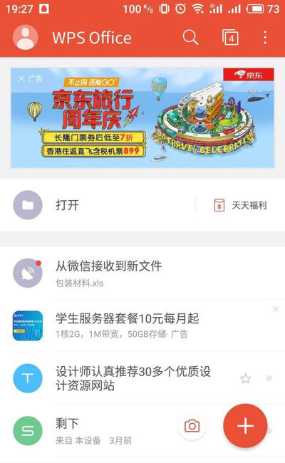 1、在应用商店搜索下载安装WPS OFFICE,安装后点击进入,选择“+”