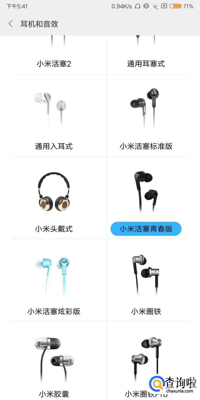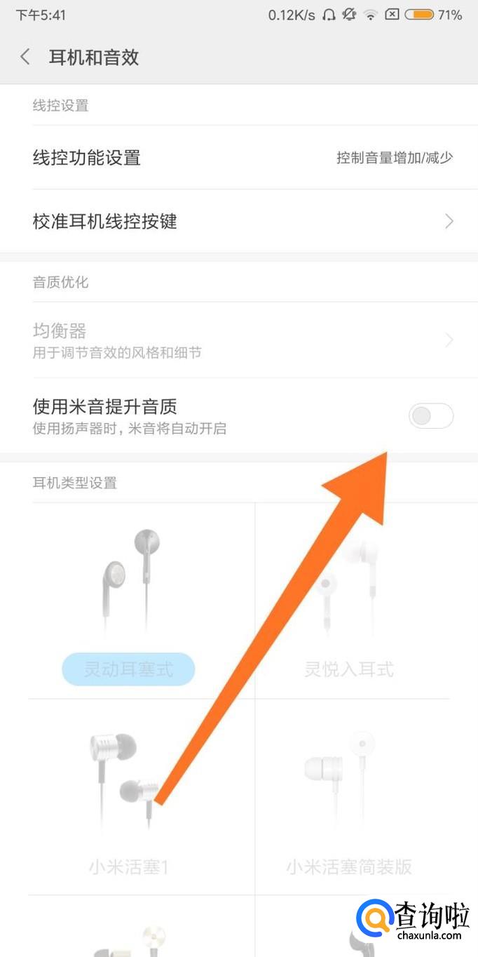 接着打开“使用米音提升音质”选项后即可设置耳机类型。