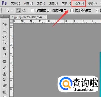 使用ps打开我们的图片然后在菜单里找到选择选项,如图所示: