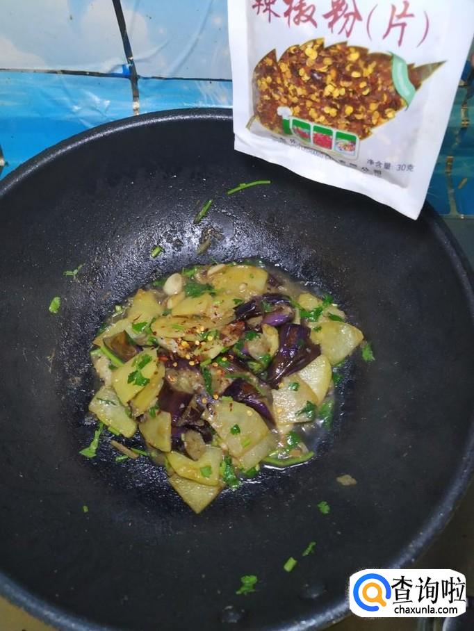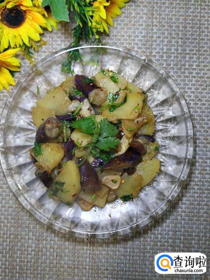 土豆适量,茄子适量,香菜适量,蒜适量,盐适量,鸡精适量,五香粉适量,生抽适量,陈醋适量,辣椒末适量。