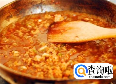 锅里面倒入一点油,把茄子放进去小火慢煎,煎到茄子发软的时候取出来,锅里倒入肉末和葱姜蒜末翻炒,肉末变色之后放入生抽以及调味料。