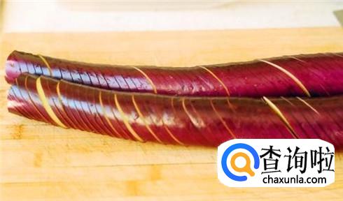 茄子清洗干净之后,用刀斜着四十五度角切,但不要切断,切好一面之后翻过来,同样斜着四十五度的切,也不要切断,这样就能切出来蓑衣茄子了,切好之后加点食盐腌制一下。