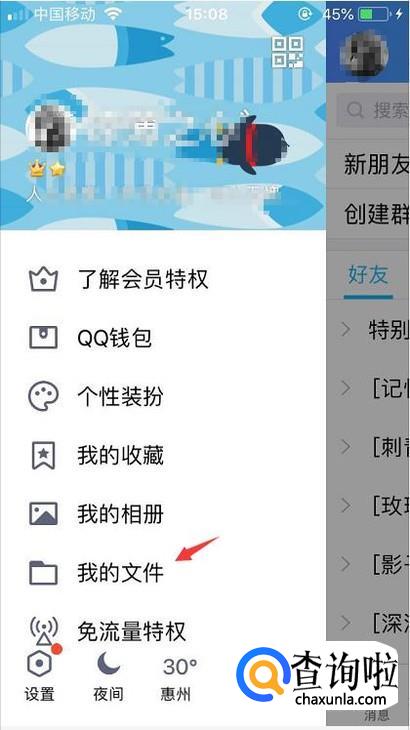 首先我们登录qq后点击左上角的头像进入到资料里面,点击我的文件。