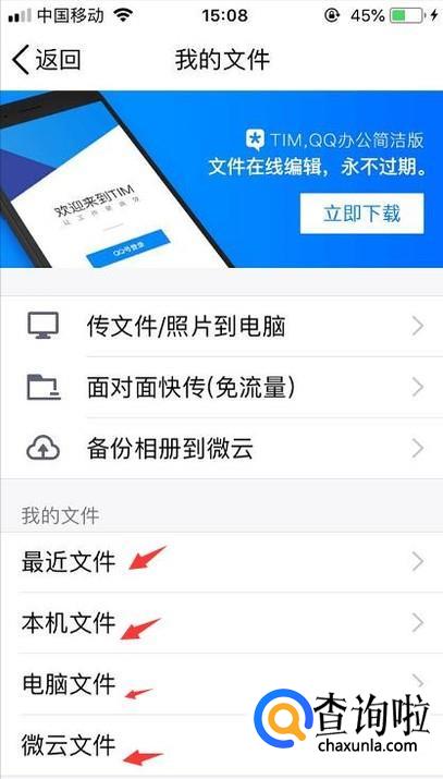 接着在我的文件里就能看到最近的文件了,还会细分到微云文件和电脑文件等等。