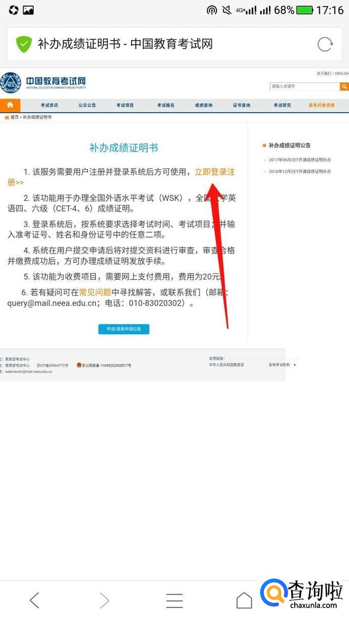 最后输入自己的相关信息,登录上去,即可补办四六级成绩证明。