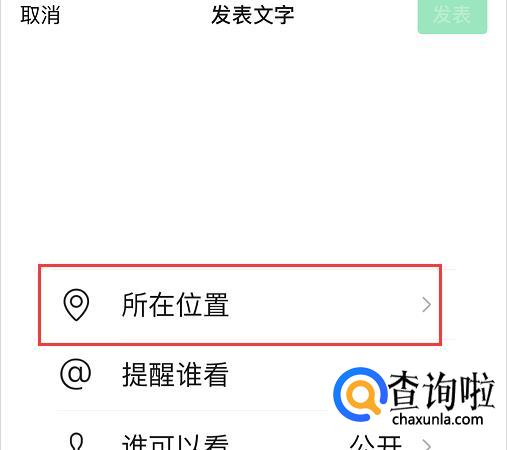 想要将定位信息发送出来,点击【所在位置】,进入定位设置,如下图所示;