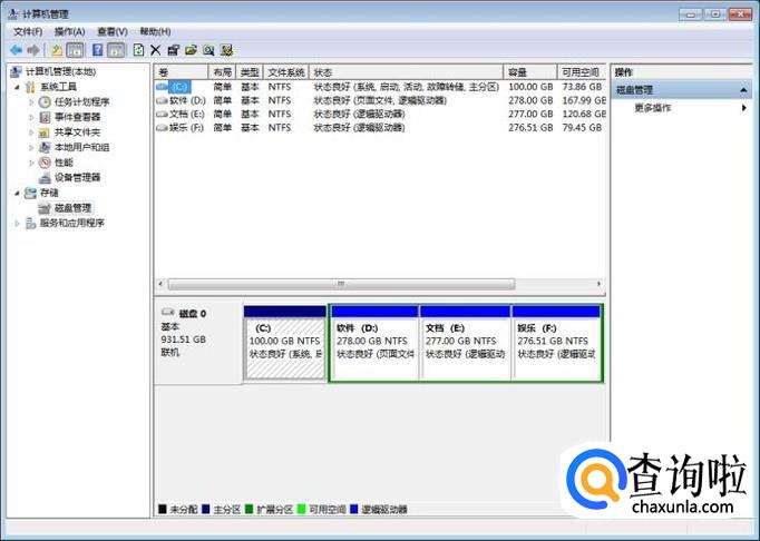 右键计算机——点击管理——进入磁盘管理