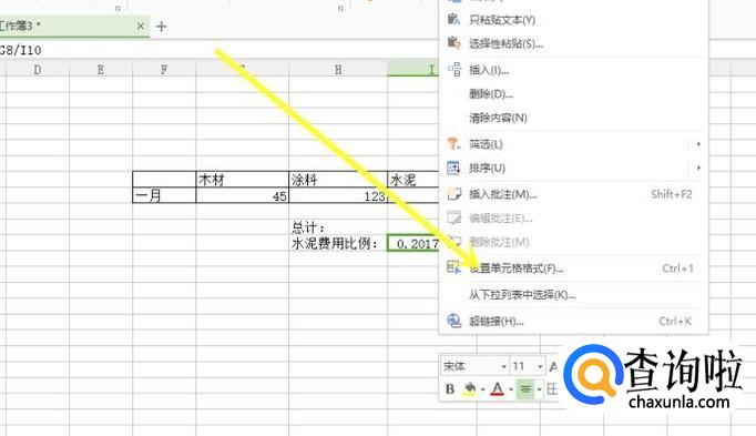 然后点击回车键即可完成计算,我们选择计算后的单元格,然后点击鼠标右键,再选择设置单元格格式