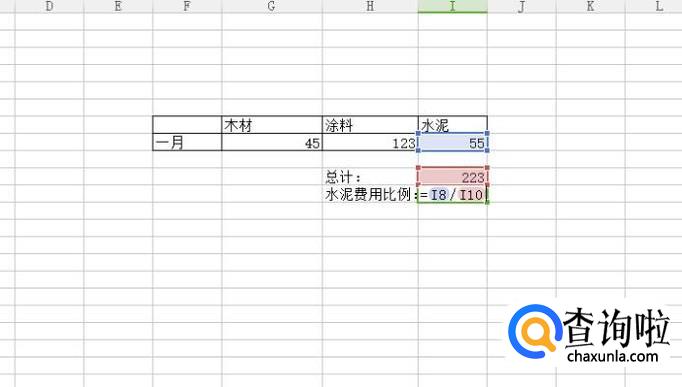然后选择需要显示百分比的单元格,输入计算公式“=I8/I10”