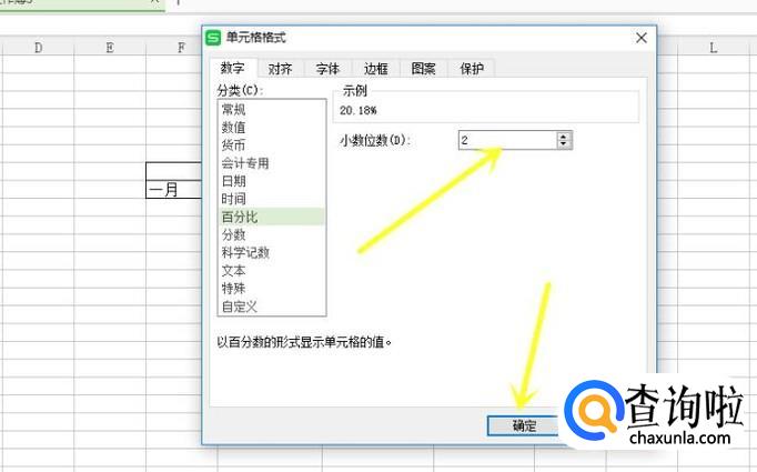 接着在此页面选择 百分比 选项,然后设置保留的2位小数位数,最后点击确定即可。