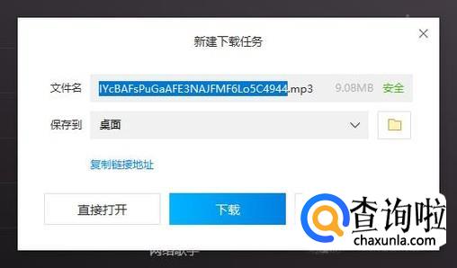 点击歌曲,选择图示位置按键,打开下载对话框,点击“下载”即可。
