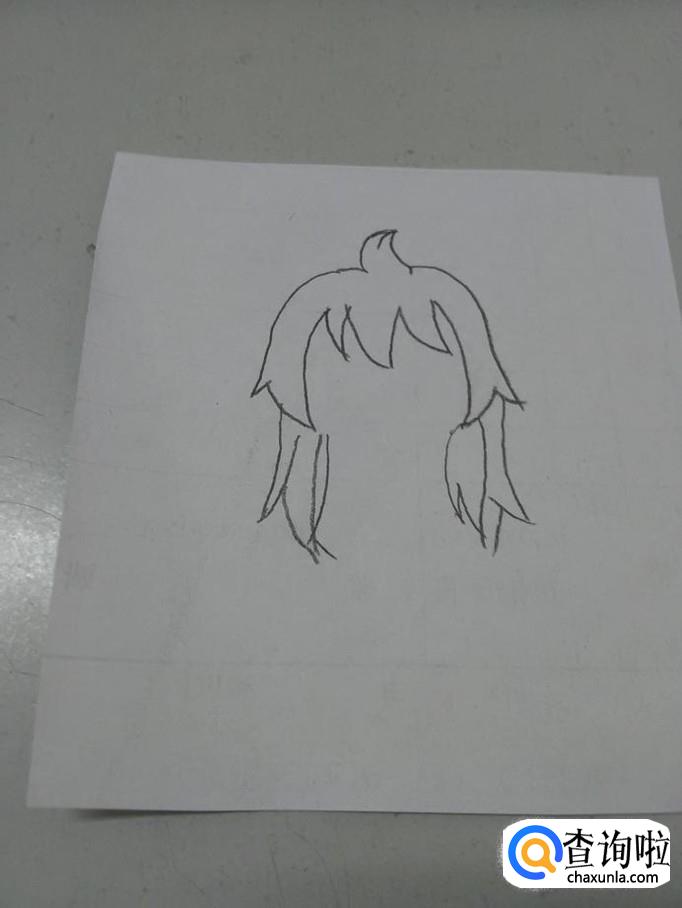 从头发往下,两侧再画一层锯齿形状,这是少女垂下来的长头发。