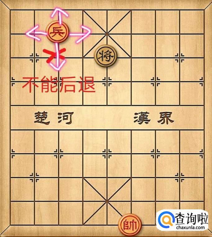兵、卒是永远不能后退的。在没过河界之前,兵、卒只能一步一步往前走;过了河界之后兵、卒可以选择往前、左以及右行走。记住,兵卒每次只能行走一步。