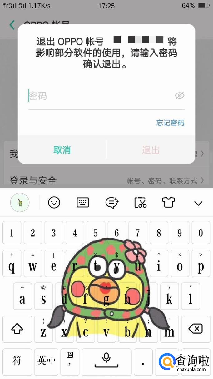 在退出OPPO账号的时候,是需要填一下登录密码的哦,这是为了OPPO手机用户的安全哦!