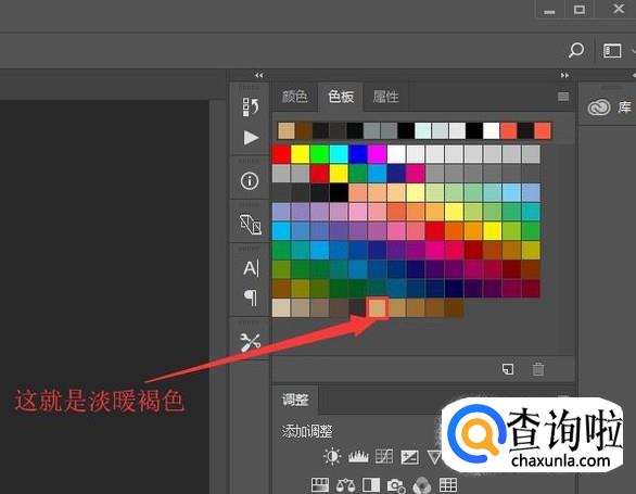 然后将画布填充为淡暖褐色,这个颜色画板中有,大家可以直接将前景色改为淡暖褐色,然后按alt+del键直接填充画布。
