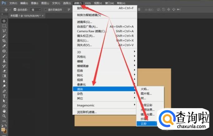 然后我们在来执行【滤镜】——【渲染】——【云彩】命令,效果如下图所示。